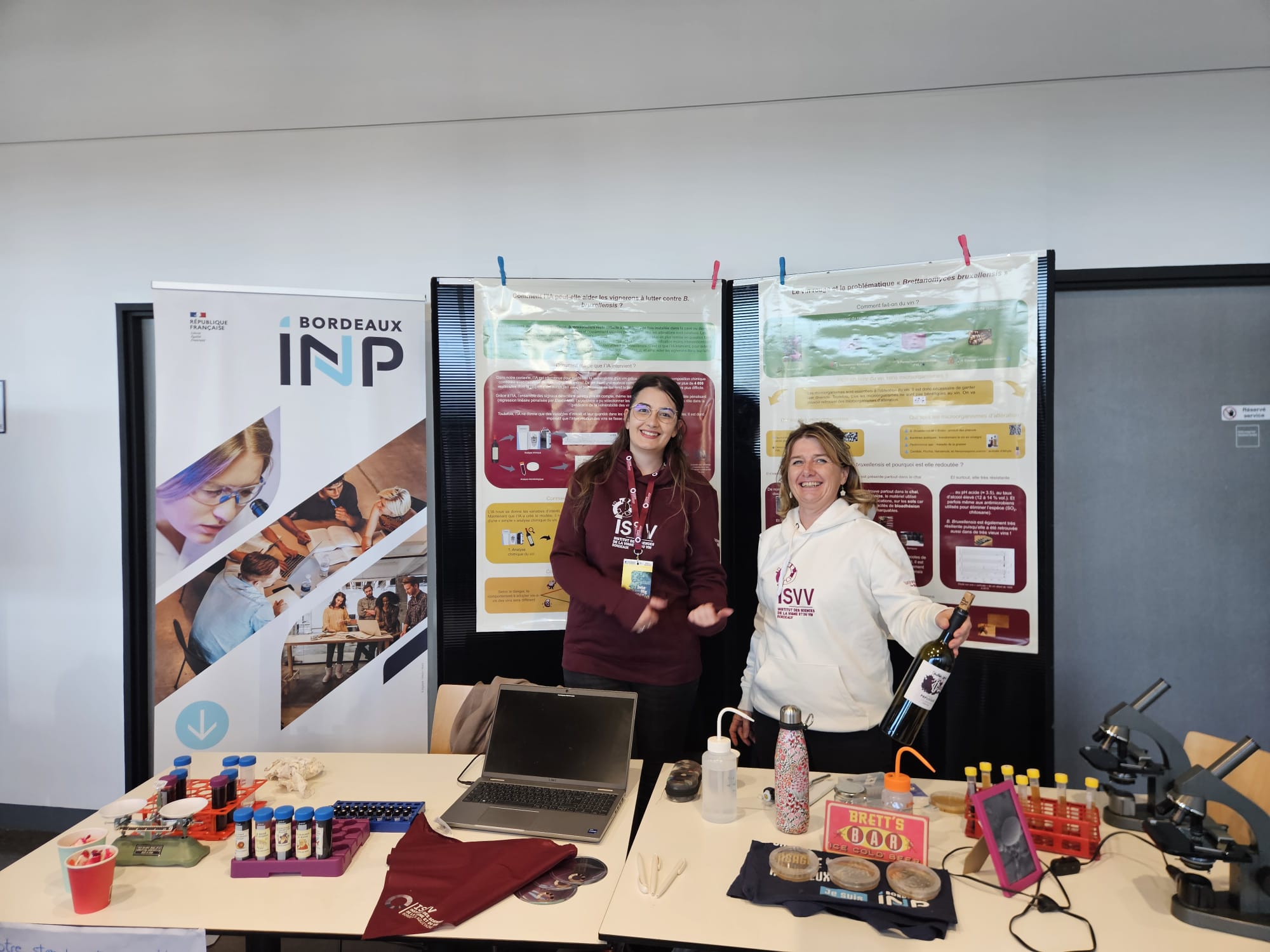L'ENSMAC proposait un stand « L’IA au service de la qualité des vins », animé par Marguerite DOLS-LAFARGUE, où les visiteurs ont pu observer le micro-organisme Brettanomyces bruxellensis, comprendre les recherches sur la prédiction du risque d’altération du vin et tester un jeu d’IA appliquée à l’analyse sensorielle.